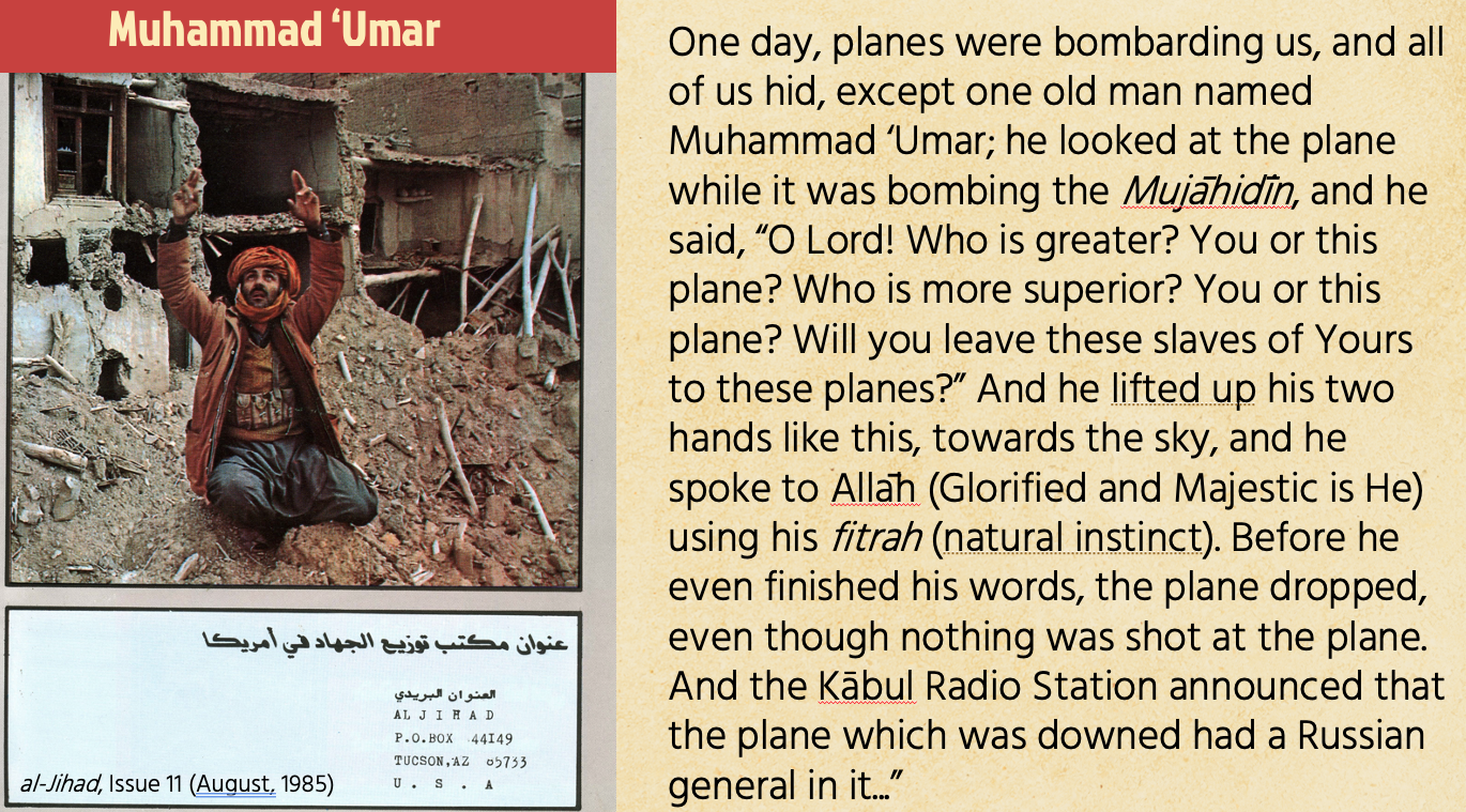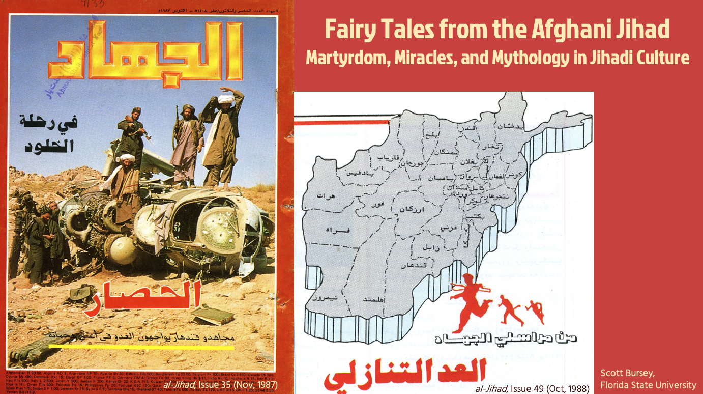 Following the Soviet invasion of Afghanistan in 1979 the response from Muslim majority countries was swift. Telethons were organized, wealthy statesmen and business magnates were encouraged to make donations and the Saudi state openly covered the travel costs for anyone bound for Pakistan in hopes of joining the jihad against the Soviets. Within this setting, Abdullah Azzam (1941-1989), the Palestinian freedom fighter and Islamic scholar, attained his PhD in usool-ul-Fiqh from Al-Azhar University while studying in the trenches on the Jordanian border. For Azzam, the Soviet invasion was a catalyst that required an individual response on the part of all Muslims to expel the Communist invader. To facilitate this, Azzam created the Maktab Khadamāt al-Mujāhidīn al-'Arab (Afghan Services Bureau) with the help of Osama Bin Laden, his largest financial donor. The goal of Services Bureau on the surface was to attract, train and lead Arab fighters in attacks against the Soviets. In reality, the Services Bureau spent little time fighting and instead, its manpower resources were channeled toward providing humanitarian relief to Afghans, and its donor money on creating a magizene targeted at an Arabic speaking audience (al-Jihad, founded in 1985) focused on attracting donor support, Arab recruits, recounting miraculous events the battlefield, and commemorating martyrs. Within the context of these martyrdom biographies all manner of miraculous events are depicted – Soviet planes fell from the sky by invoking the name of God; Qur’anic recitation was used as a tool to avoid being shot while under fire; seeing dead comrades in your dreams as a way to know they have reached Jannah, and so much more. The goal of my work is to provide a survey of these martyrdom biographies, the miracles they record and situate them within a wider jihadist cultural cosmology.